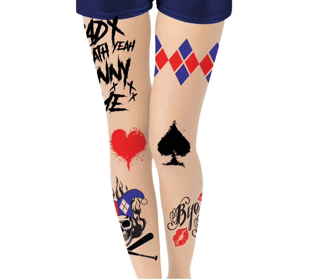 Diese fantasievolle Strumpfhose vereint den frechen Esprit eines Zeichentrick-Liebhabers mit der Stärke eines Abenteuerhelden. Perfekt für die Halloween-Saison, verleihen die verspielten Designs mit Joker Inspiration und farbenfrohen Motiven wie dem herzlichen Rot und dem geheimnisvollen Joker-Muster jedem Outfit eine Extra-Portion Flair. Tauchen Sie ein in die abenteuerliche Welt der Fantasie, während das Ace-Symbol und der auffällige Aufdruck einer Kapriolenfigur Mut und Ungeordnetheit verkörpern. Jede Bewegung in dieser Strumpfhose wird zum Ausdruck verspielter Hingabe an die bunte Welt der Comics und Abenteuer.