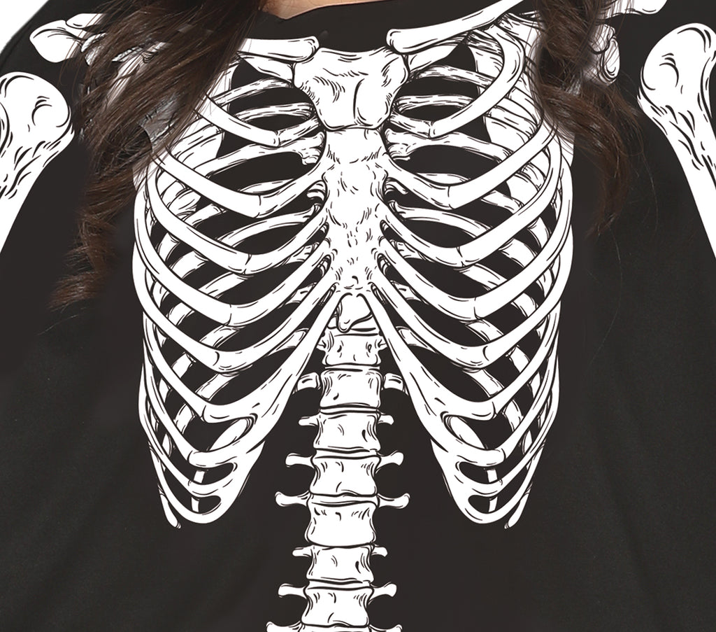 - Schwarzer Umhang mit gruseligem Skelett-Design ideal für Halloween Partys