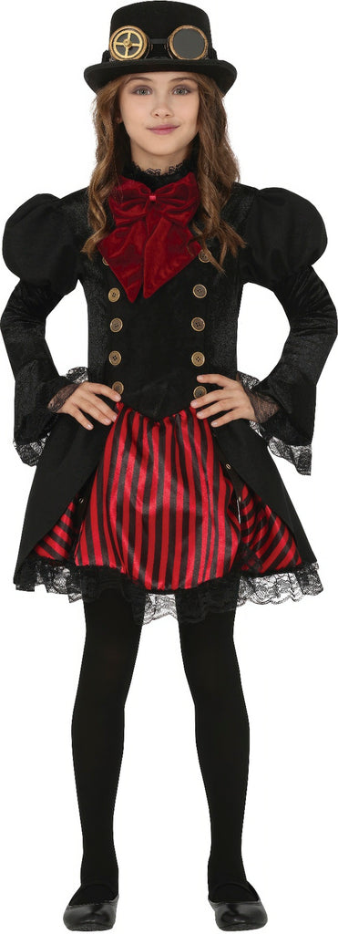 In eine dunkle und geheimnisvolle Welt eintauchen, das Steampunk Halloween Outfit lädt junge Entdecker ein, eine Zeitreise voller Abenteuer zu erleben. Das Kleid in kräftigem Schwarz und Rot mit viktorianischen Details verwandelt jedes Fest in ein unvergessliches Ereignis. Mit Spitze und Knöpfen versehen, erinnert es an längst vergangene Zeiten. Ein Hauch von Vampir und Grusel umweht dieses einzigartige Kostüm, perfekt für die mystische Halloween-Nacht oder eine schräge Faschingsparty. Die fantasievollen Elemente laden ein, in die Rolle eines Zeitreisenden zu schlüpfen, der zwischen Dampfschiffen und mechanischen Welten neue Abenteuer erlebt.