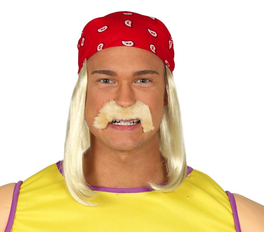 Treten Sie ein in die Welt des Sports und des Karnevals mit diesem einzigartigen Bandana, das den Geist eines dynamischen Wrestlers einfängt. Die rote Farbe zieht alle Blicke auf sich, während das markante Muster für einen abenteuerlichen Touch sorgt. Perfekt für sportlich inspirierte Kostüme oder um als geheimnisvoller Held Ihrer eigenen Geschichte aufzutreten. Die dazugehörige blonde Perücke und der auffällige Schnurrbart ergänzen das Look-and-Feel eines klassischen Showkampf-Champions. Ideal für Karneval und Partyabende voller Spaß und Freude. Werden Sie zur Legende auf jeder Feier und verkörpern Sie die kraftvolle Ausstrahlung eines wahren Kampfgeist-Kriegers!