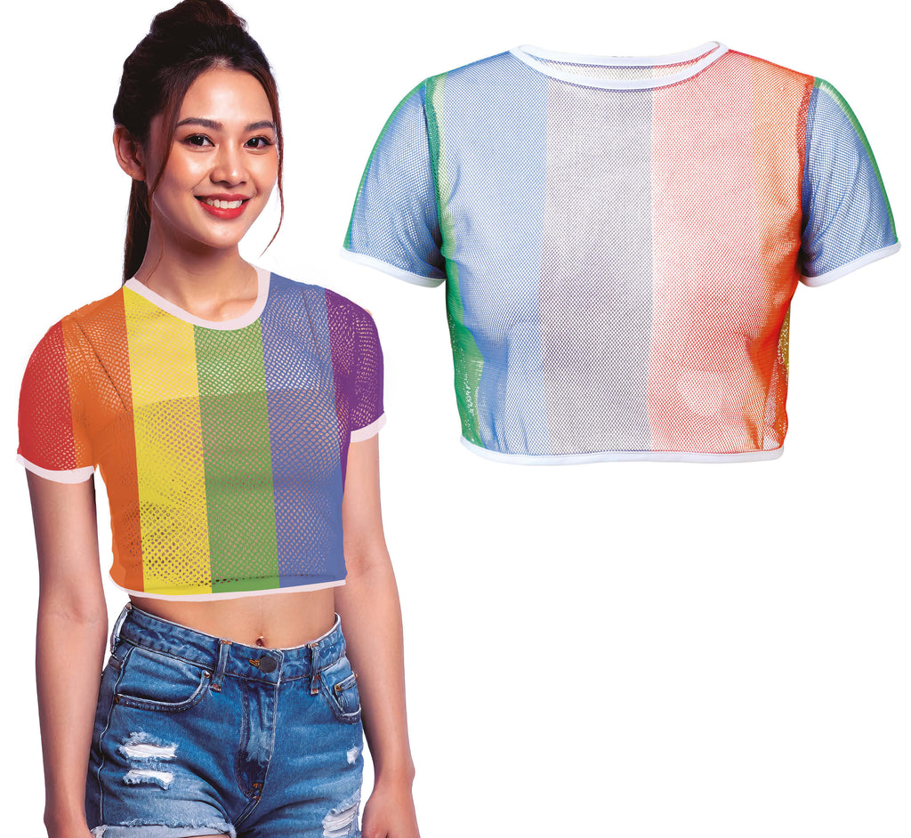 Entdecke das bunte Leben mit diesem Regenbogen-Shirt, ideal für Karneval und farbenfrohe Festivals. Das luftige Netzdesign sorgt für ein leichtes Tragegefühl, perfekt für ausgelassene Feierlichkeiten. Lass dich von den leuchtenden Farben inspirieren und bringe Farbe in jeden Raum. Ob auf der Tanzfläche oder bei einer Parade, dieser Look geht nie unter. Ein Statement für kreativen Ausdruck und Lebensfreude, das jeden in seinen Bann zieht.