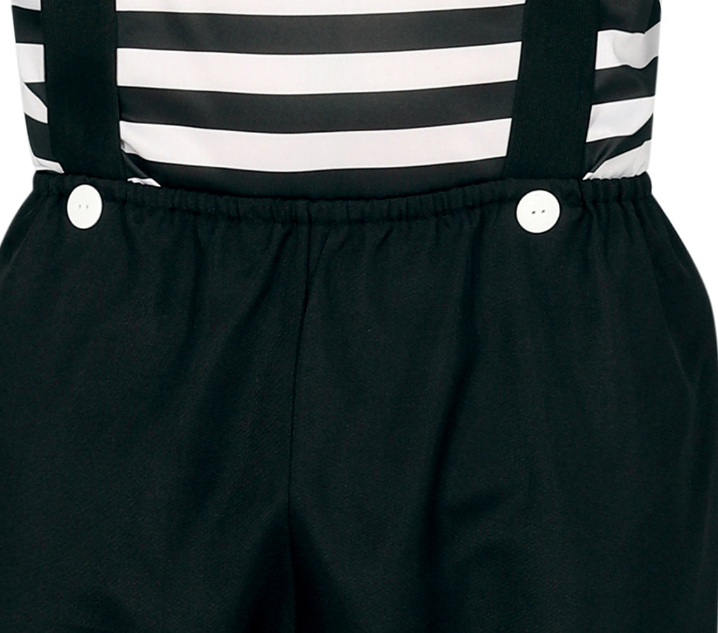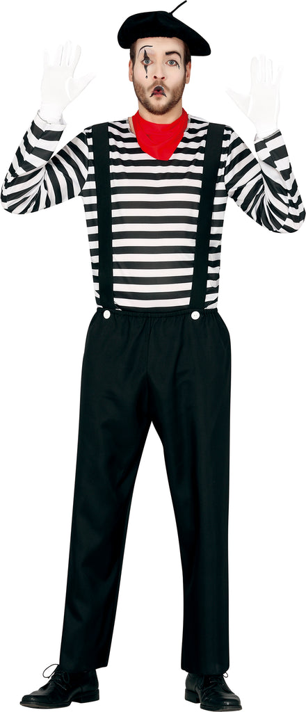 Mit diesem originellen Kostümset tauchen Sie in die faszinierende Welt der stummen Künstler ein. Perfekt für Karneval verleihen Sie mit einem Hauch von französischem Flair jedem Event einen Hauch von Abenteuer. Das Outfit enthält charakteristische Accessoires, die die ikonische Silhouette eines Künstlers im bunten Clownuniversum verkörpern. Das gestreifte Shirt und die stilvollen Hosenträger fügen Eleganz hinzu, während die klassische Baskenmütze Ihre kreative Seite betont. Werden Sie zum lebendigen Bild eines stummen Geschichtenerzählers und lassen Sie Ihrer Fantasie freien Lauf.