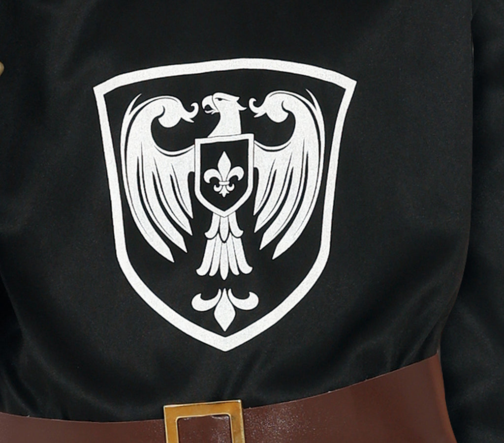 • Imposante Rittertunika mit königlichem Wappen in Schwarz gehalten
