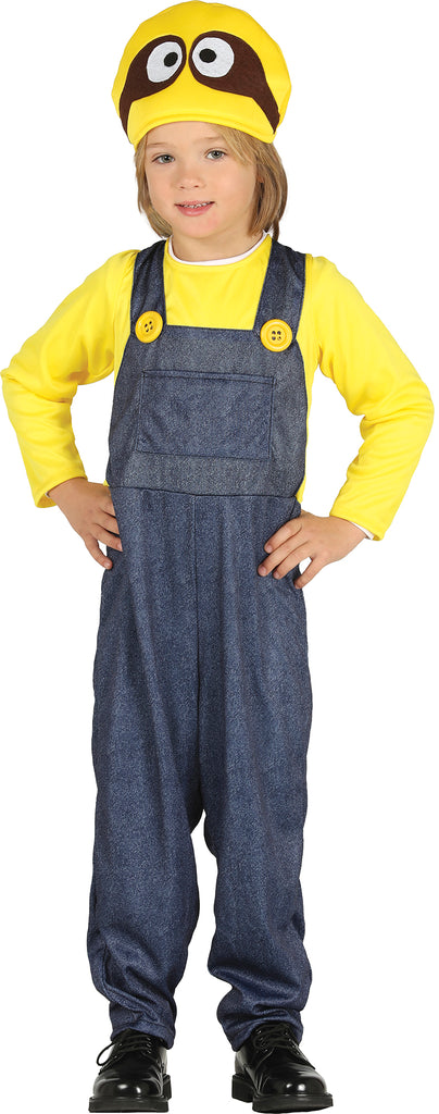 - Leuchtend gelber Hut und blauer Overall ideal für Karneval