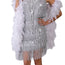 - Glamouröses 20s Flapper Kleid in schimmerndem Silber mit eleganten Fransen für einen authentischen Charleston Look