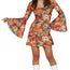 Erleben Sie den Geist der 70er mit diesem farbenfrohen Hippie-Outfit, das Sie in eine Welt der Blumenfestivals und Friedensbewegungen versetzt. Das lebhafte Blumenmuster vermittelt Gefühl und Freiheit vergangener Tage, während die ikonischen Schlagärmel harmonisch mitschwingen. Mit dem passenden Stirnband und einem auffälligen Friedenszeichen-Accessoire wird dieses Outfit zum Star auf jeder Karnevalsparty. Der Retro-Look entführt Sie in eine Ära voller Lebensfreude und Kreativität, ideal für jene, die die bunte Vielfalt und den freiheitsliebenden Geist der 70er Jahre erleben möchten.
