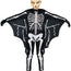 In der Welt der schaurig-schönen Nächte fliegst du mit diesem Kostüm wie ein geheimnisvolles Schattenwesen durch die Dunkelheit. Das Skelettmotiv erhebt sich vor dem schwarzen Hintergrund und zaubert ein magisches Gruselbild, das die Fantasie beflügelt. Die weiten Flügel des finsteren Nachtgeschöpfes erstrecken sich weit und lassen dich zum Star jeder Halloween-Party werden. Deine geheimnisvolle Verwandlung lässt Gestalten der Nacht erblassen, während du mit den Flügeln umherschwebst und das mystische Flair verbreitest. Erlebe, wie die Dunkelheit zum Spielplatz fantastischer Geschichten wird und du als Fledermaus Skelett den Charme der Nacht einfängst.