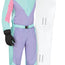 Erleben Sie den unvergesslichen Charme der 80er mit diesem einzigartigen Skianzug, der in Blau, Lila, Rosa und Mint den Geist vergangener Winterabenteuer aufleben lässt. Die kräftigen Farben und das sportliche Design machen ihn zum perfekten Begleiter für Karneval und andere festliche Anlässe. Lassen Sie sich von den Retro-Vibes inspirieren und genießen Sie den Trubel der Skisaison.