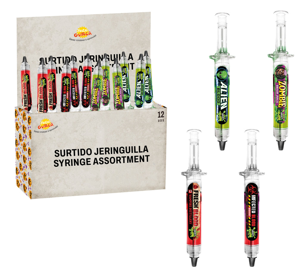 Tauchen Sie ein in die Welt des Schauders mit unseren einzigartigen Halloween Injektoren. Perfekt, um die düstere Atmosphäre eines Gruselfestes zu verstärken. Kreieren Sie unvergessliche Momente mit blutrünstigen Zombie- und Alien-Motiven, die sofort für Aufsehen sorgen. Die lebensechte Optik dieser Spritzen macht sie zu einem idealen Accessoire für jede Halloweenparty. Lassen Sie Ihre Fantasie freien Lauf und gestalten Sie ein schauriges Ambiente, das Ihre Gäste begeistern wird. Ideal für Horrormottopartys und Themenabende, bei denen der Grusel im Vordergrund steht.