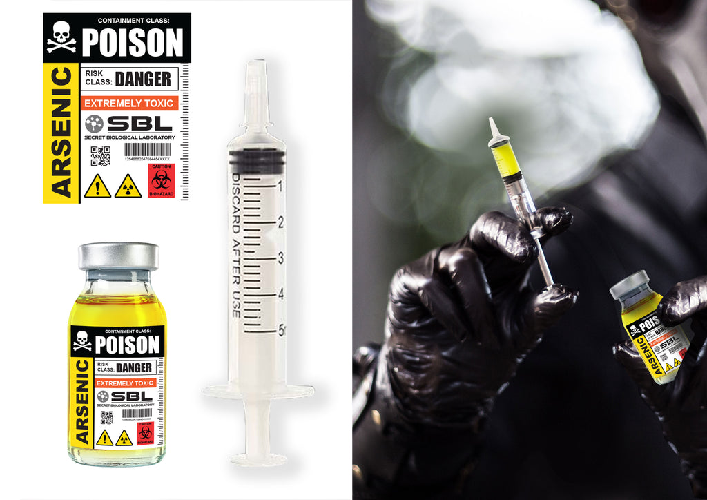 - Giftflasche und Spritze als unheimliches Szenario-Zubehör