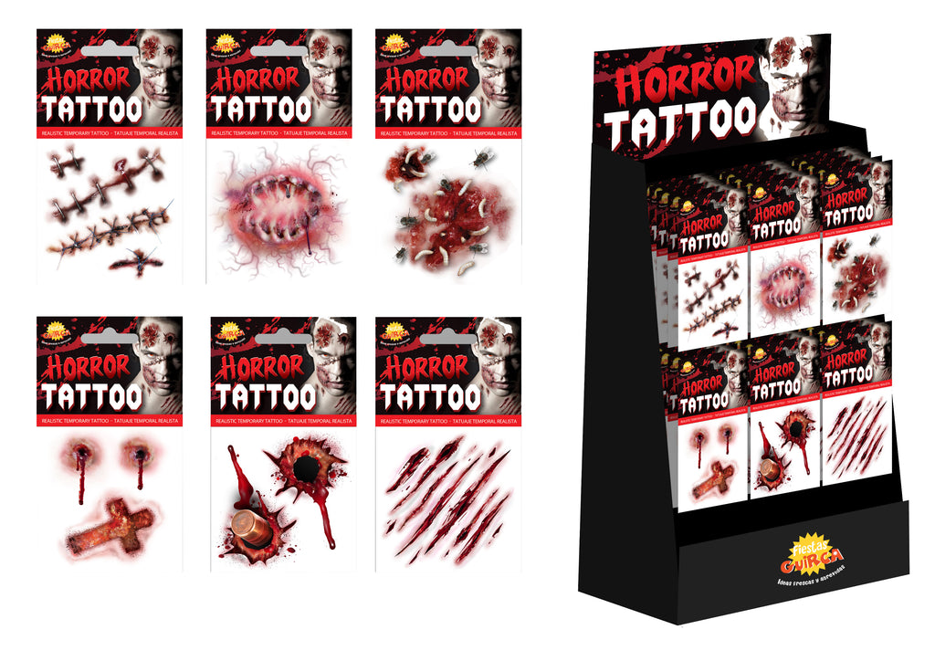 - Erschaffe mit diesen temporären Tattoos authentische Horrorszenarien für Halloween und erschrecke deine Freunde wie nie zuvor