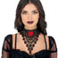 Erwecken Sie die majestätische Eleganz der Märchenköniginnen und edlen Marquisen zum Leben. Diese kunstvoll gestaltete Halskette, inspiriert von barocker Pracht, besticht durch eine tiefrote Rose, die aus zartem Schwarzem hervortritt. Ein Accessoire, das das Geheimnis und die Verführung der Gotik einfängt und den Träger in eine andere Zeit versetzt. Die feine Verzierung erinnert an blühende Rosen im Schatten eines mondbeschienenen Gartens. Perfekt für Halloween, um die Aura alter Legenden und Mythen zu zelebrieren. Ein Schmuckstück voller Geschichten und raffinierter Handwerkskunst, das die Fantasie anregt und jeden Abend unvergesslich macht.