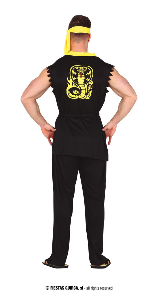 Für Fans von Filmklassikern und Kampfkunst ist dieses Kostüm ein Muss! Mit seinen kontrastreichen Schwarz-Gelb-Tönen beschwört es das Bild eines meisterhaften Schlangenkämpfers herauf. Perfekt für den Karneval oder Fasching, versetzt dieses Outfit den Träger in das Reich der Ninjas und Krieger. Die detailgetreue Gestaltung mit auffälligem Schlangenmotiv bringt die Faszination asiatischer Kampfkunst zum Leben. Eine Jacke und Hose sorgen für Bewegungsfreiheit, während der Gürtel das Gesamtbild abrundet. Bereite dich darauf vor, die Bühne als charismatischer Kämpfer zu erobern.