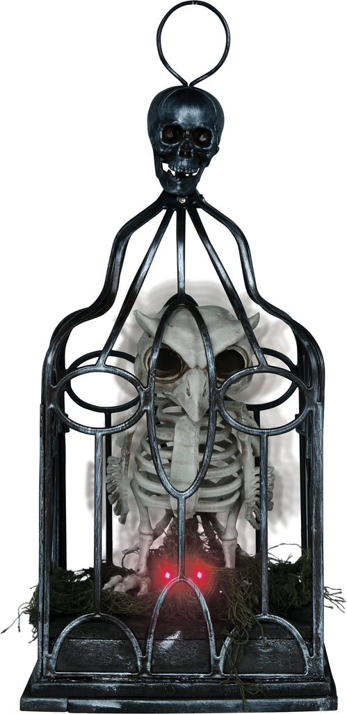 Erleben Sie eine unheimliche Atmosphäre mit dieser Skelett-Eule, die in einem kunstvollen Käfig ruht. Perfekt für Halloween, verleiht sie jedem Raum einen düsteren Charme. Diese gruselige Figur mit ihrem markanten Skelett-Design zieht alle Blicke auf sich und verwandelt Ihr Zuhause in einen geheimnisvollen Ort voller Schauer und Staunen. Die Details der Skelettstruktur und der Käfig im gotischen Stil machen dieses Dekoelement zu einem herausragenden Stück, das Ihrer Halloween-Dekoration den letzten Schliff verleiht. Lassen Sie sich von der fesselnden Ausstrahlung und der fantastischen Verarbeitung inspirieren.