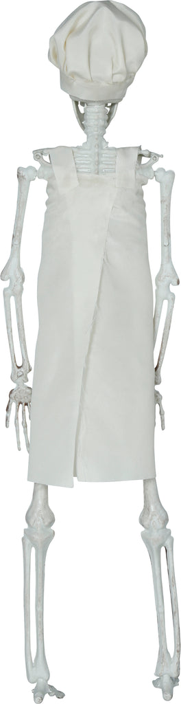 Erleben Sie die mystische Atmosphäre von Halloween mit dieser einzigartigen Skelett Koch Dekoration. Der geheimnisvolle Koch, gehüllt in einem eleganten weißen Gewand, bereichert Ihre dekorative Sammlung mit seinem unverwechselbaren Charme. Auf der Suche nach verlorenen Rezepten sorgt er für ein unvergessliches Ambiente in Ihrem Zuhause oder auf Ihrer Party. Seine markante Mütze verleiht ihm das feierliche Erscheinungsbild eines Meisters der Untoten und zieht alle Blicke auf sich. Eine perfekte Ergänzung für Motto-Partys und thematische Feierlichkeiten, die jedem Raum eine fesselnde und humorvolle Note verleiht.