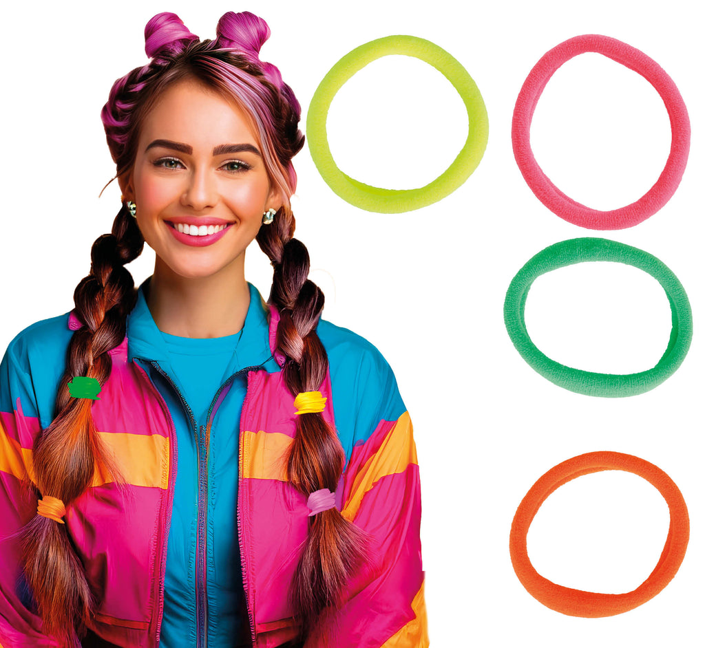 - Bunte Haarbänder im 90s-Look für lebendige Karnevalsmomente