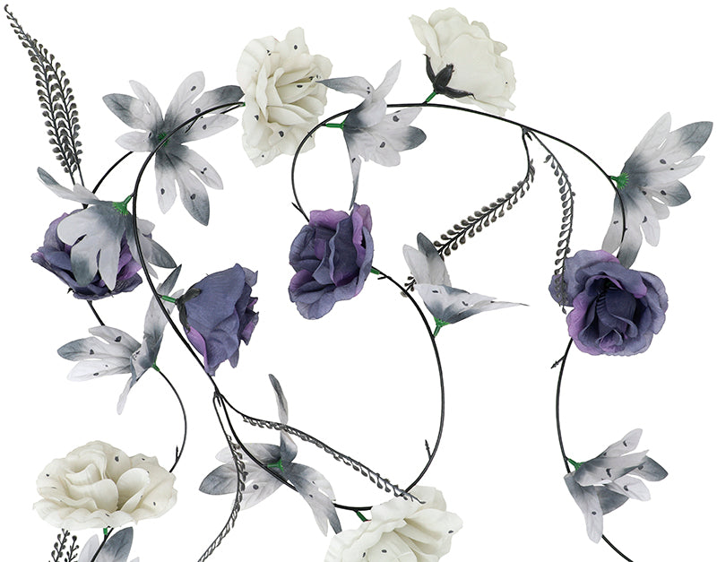 Verleihen Sie Ihrer Halloween-Feier mit dieser eindrucksvollen Blumengirlande eine mystische Aura. Die Kombination aus eleganten grauen und blauen Blüten versetzt Ihre Gäste in eine geheimnisvolle Welt. Perfekt für die Herbstsaison, bringt diese Dekoration eine magische Stimmung in jeden Raum. Lassen Sie die zarten Blüten in einem sanften Spiel von Licht und Schatten tanzen, während der Duft von Abenteuer in der Luft schwebt. Ob als Hingucker auf der Tafel oder künstlerisch an der Wand drapiert, die Girlande lädt dazu ein, die Fantasie wandern zu lassen und sich in eine andere Welt zu träumen.