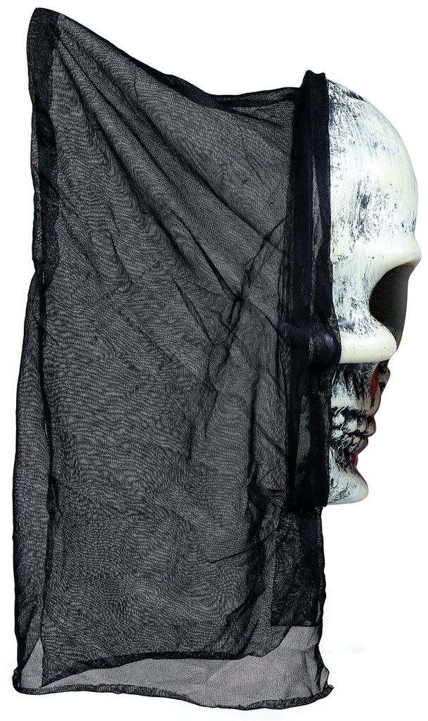 - Die dunkle Kapuze verstärkt das gespenstische Gesamtbild