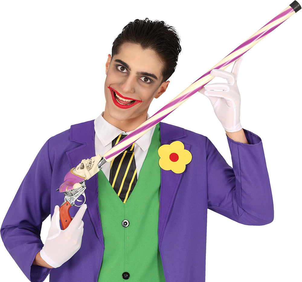Dieser einzigartige Gehstock mit Narraufsatz setzt mit seiner fantasievollen Gestaltung auf mutige Akzente. Perfekt für Halloween-Abenteuer, vereint er die Welt der Superhelden und Comichelden in einem verspielten Accessoire. Die Maske in lebendigen Farben spiegelt den schelmischen Geist des Mr. Smile wider und lässt Sie in die Rolle einer unverwechselbaren Abenteuerfigur eintauchen. Ob auf Partys oder als Teil eines aufsehenerregenden Kostüms, dieser stockartige Gag garantiert ein Lächeln auf den Lippen.