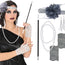 Erleben Sie den zeitlosen Charme der 1920er Jahre mit diesem glamourösen Set, das Sie zurück in die Ära des Jazz und der Flapper-Girls versetzt. Ein elegantes Stirnband, geschmückt mit einer großen Blüte und schwungvollen Federn, rundet Ihren Look ab. Die langen Perlenketten strahlen Eleganz aus und die filigranen Ohrringe ergänzen den stilvollen Auftritt. Zarte Spitzenhandschuhe verleihen Ihren Händen einen Hauch Raffinesse, ideal für die nächste Karnevalsparty oder Mottoveranstaltung. Tauchen Sie ein in den Glanz und die Extravaganz der goldenen Zwanziger!