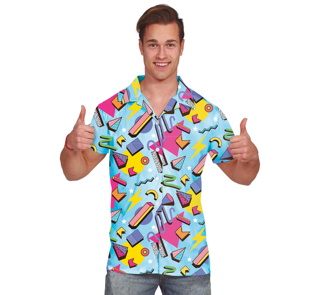 - Farbenfrohes 80er Jahre Hemd mit geometrischen Mustern für ein auffälliges Karnevalsdesign