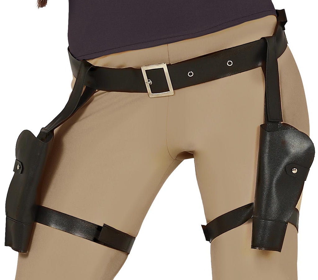 - Abenteuerliche Videospielheldin mit Brustgeschirr und Gürtel
