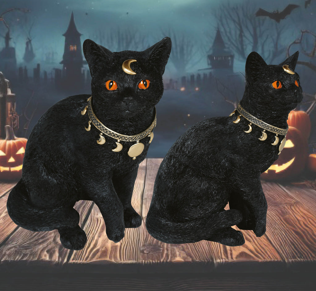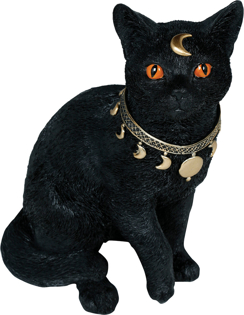 • Schwarze Katze mit goldenen Akzenten wirkt geheimnisvoll und elegant
