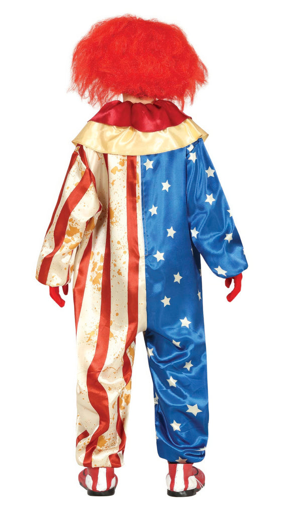 - Mutiger Clownauftritt mit fesselndem Stars and Stripes Look inspiriert von amerikanischen Abenteuerwelten und Zirkuslegenden