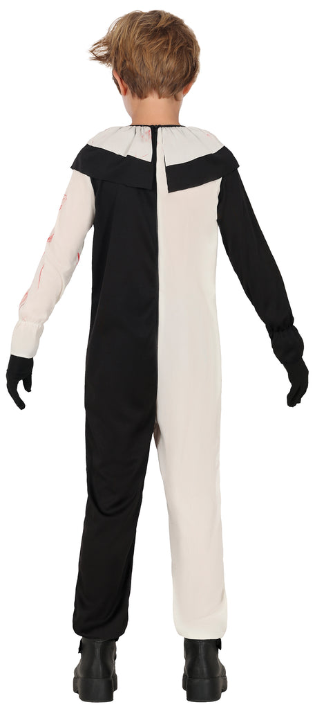 Mit diesem Clownskostüm taucht Ihr Kind in die geheimnisvolle Welt der Zirkusnächte ein. Der monochrome Look in Schwarz und Weiß verstärkt das unheimliche Flair, perfekt für schaurige Halloweenfeiern. Die auffälligen Details wie die Rothandabdrücke und der spitze Hut erinnern an eine mysteriöse Zirkuswesen, die sowohl faszinierend als auch furchterregend sein können. Ein Erlebnis für kleine Abenteurer, die die Mischung aus Spaß und Gänsehaut lieben. Lassen Sie Ihr Kind in dieser unvergleichlichen Kostümierung zur Hauptattraktion jeder Halloweenveranstaltung werden.