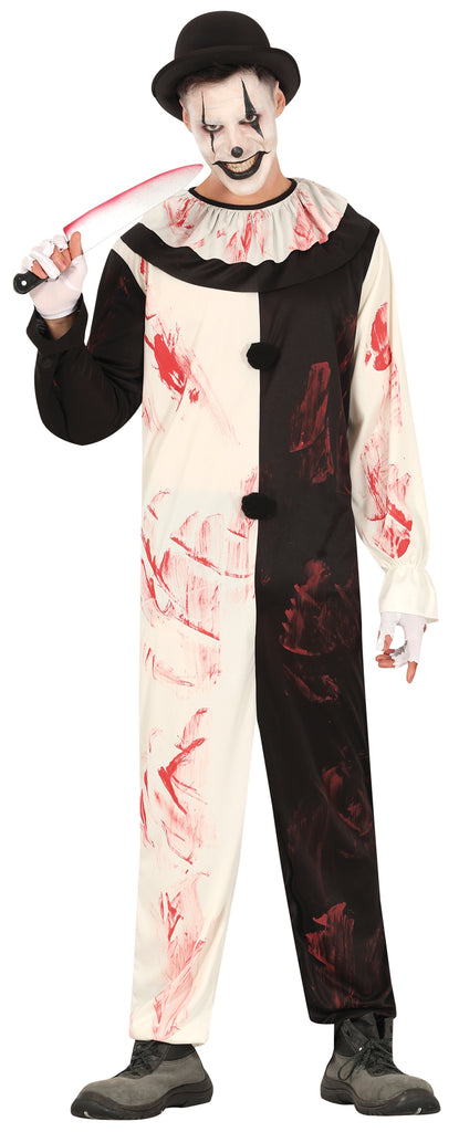 Tauche ein in die Welt des Grauens mit diesem schaurigen Clown-Kostüm, ideal für Halloween. Die zerrissene Optik und blutigen Akzente erwecken das Böse und sorgen für schaurige Momente. Die kontrastreichen Farben Schwarz, Weiß und Rot verstärken den unheimlichen Effekt und machen jede Bewegung zum gruseligen Schauspiel. Dieser Alptraum-Clown entfaltet im Dunkel seine bedrohliche Präsenz und sorgt für unvergessliche Schreckensmomente auf jeder Party. Eine perfekte Wahl, um die gruselige Faszination eines düsteren Zirkus zum Leben zu erwecken.