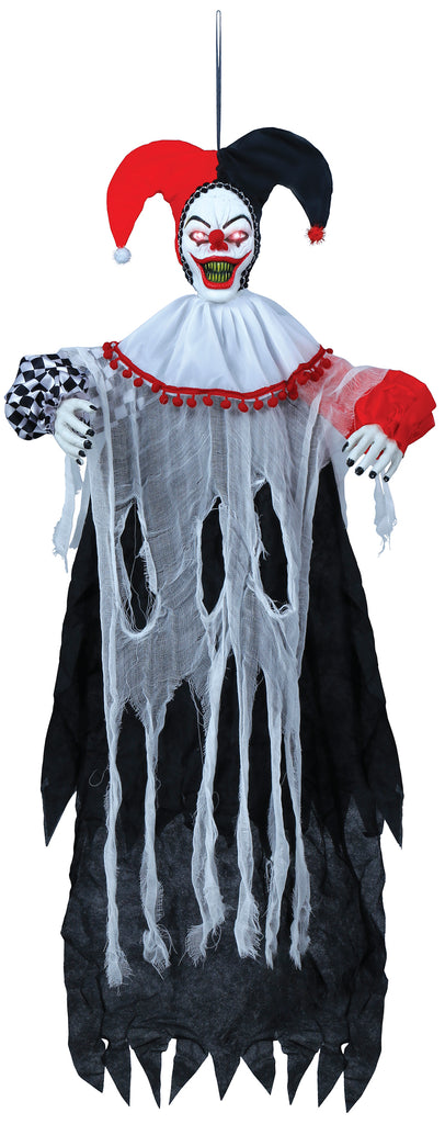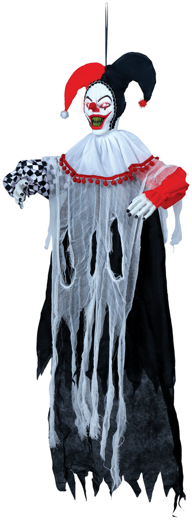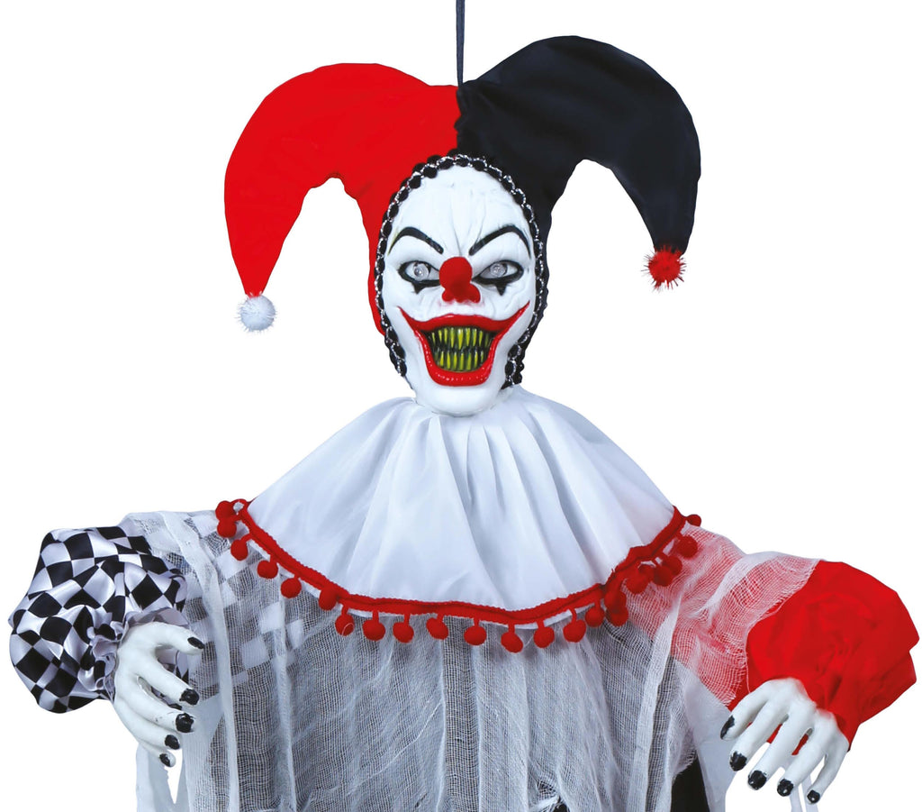 Dieser Clown zieht mit seiner furchterregenden Erscheinung jede Aufmerksamkeit auf sich. Sein schauerliches Lächeln und die bedrohlich wirkenden Augen machen ihn zu einem perfekten Accessoire für jede Halloween-Dekoration. Die Mischung aus klassischen Clown-Elementen und einem düsteren Design verleiht ihm eine einzigartige, gespenstische Ausstrahlung. Ein unvergesslicher Blickfang, der das Gefühl von Unbehagen auf jeder Veranstaltung verstärkt.