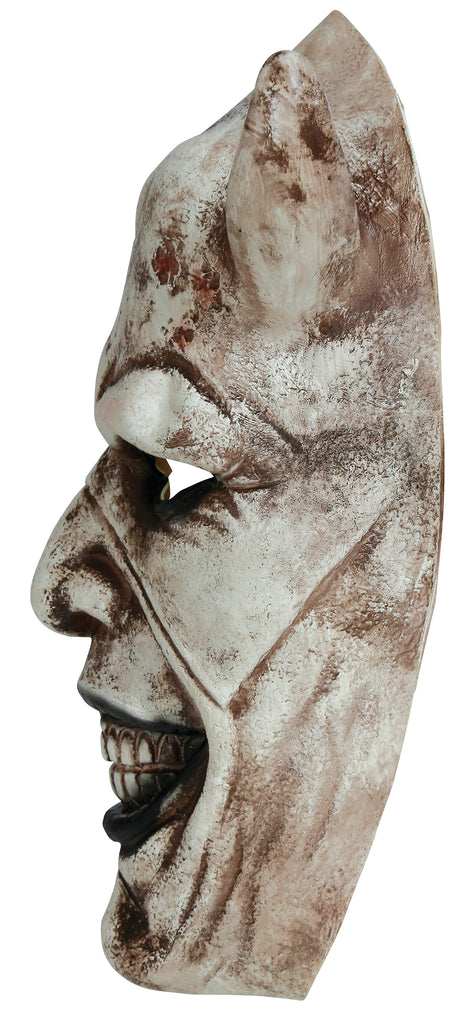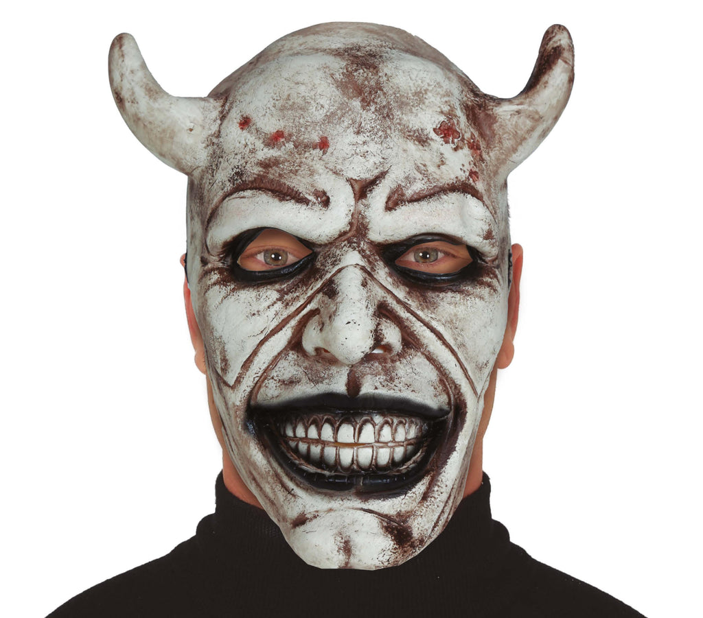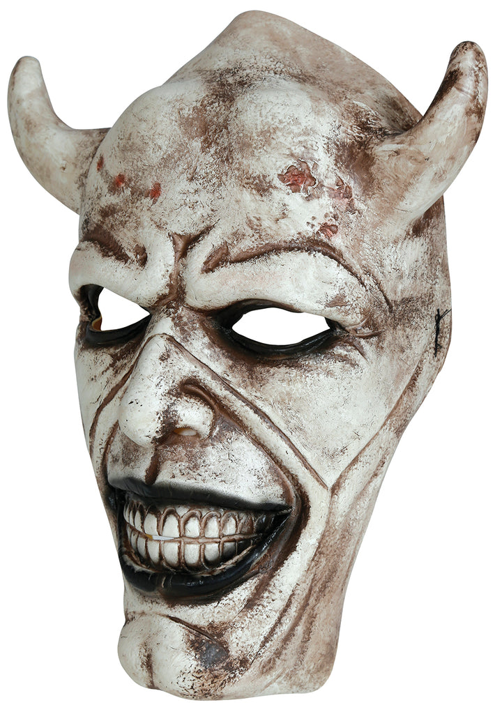 - Düstere Halloween-Maske mit furchteinflößendem Grinsen und Horn-Details