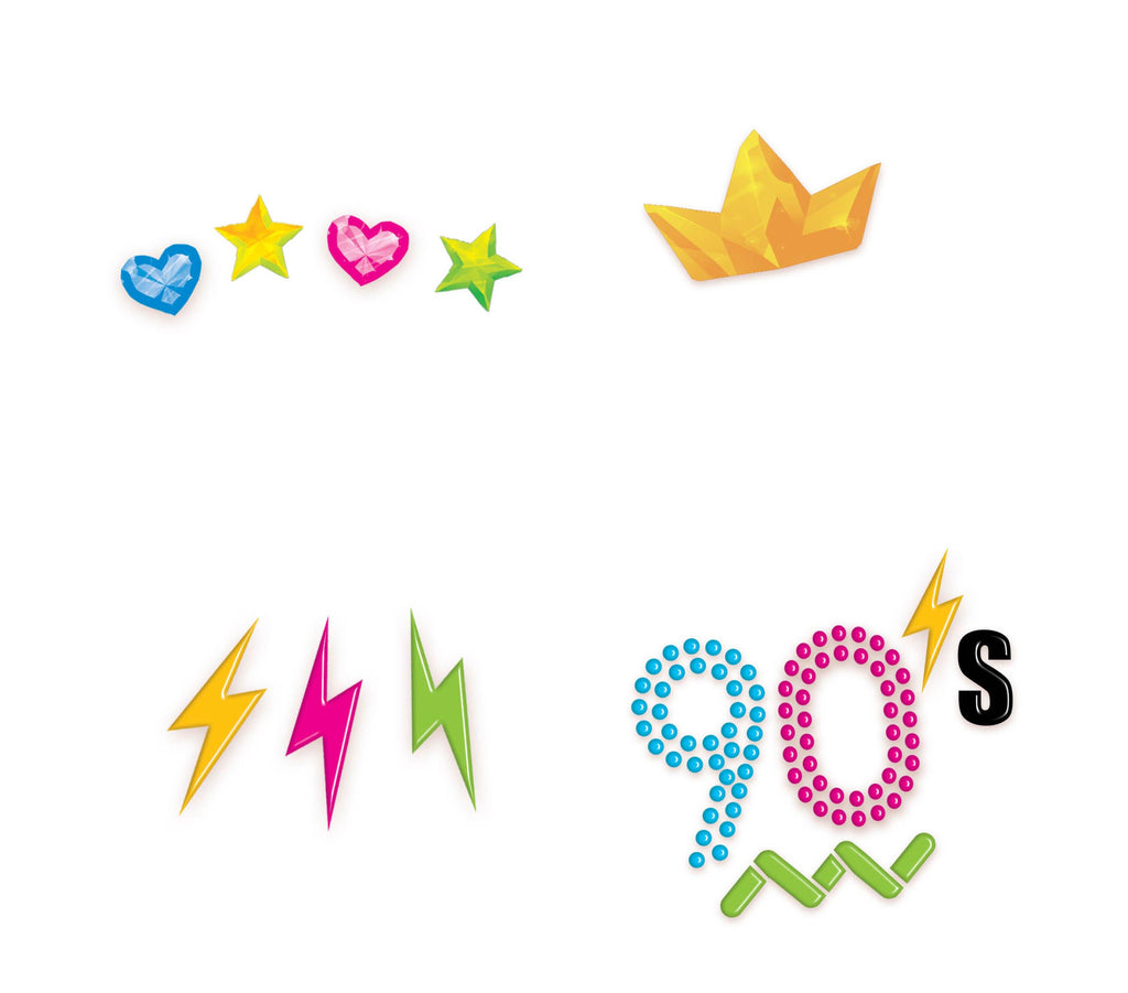 - Farbenfrohe Designs für eine glitzernde 90er Jahre Party