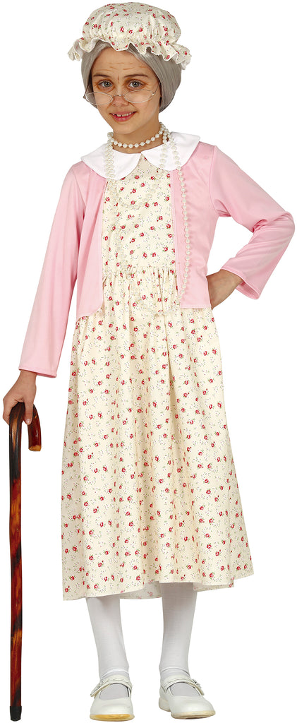 Erwecken Sie mit diesem liebevoll gestalteten Outfit die wunderbare Welt der Geschichten und Rollenspiele zum Leben. Das Großmutter Kostüm, mit detailverliebtem Blütenmuster und passender Haube, lässt Ihr Kind in die Rolle eines weisen Märchencharakters schlüpfen. Ob im Kindergarten oder auf Themenpartys, das Ensemble verleiht jedem Anlass eine zauberhafte Note. Der nostalgische Stil entführt in eine Zeit voller Geschichten und Abenteuer, während die zart abgestimmten Farben und Muster eine freundliche Atmosphäre schaffen. Das Kleid lädt dazu ein, grenzenlose Fantasie spielen und strahlen zu lassen.