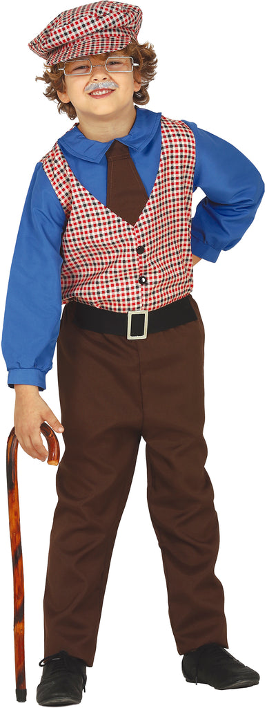 Das Großvater-Kostüm für Kinder weckt das Gefühl nostalgischer Abenteuer. Mit Details, die an frühere Zeiten erinnern, schickt es die jungen Träger auf eine Reise durch die Zeit. Die lebendigen Farben Blau, Rot und Braun verleihen dem Look einen fröhlichen und doch klassischen Charakter. Perfekt für kleine Geschichtenerzähler, die sich in die Rolle eines charmanten älteren Herrn versetzen möchten. Mit typisch traditionellen Details wie der karierte Weste und der stilvollen Mütze wird aus jeder Kostümparty ein echtes Highlight. Die liebevoll gestalteten Accessoires lassen Raum für kreative Geschichten, während der Spazierstock das Outfit stilvoll abrundet.