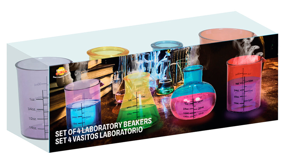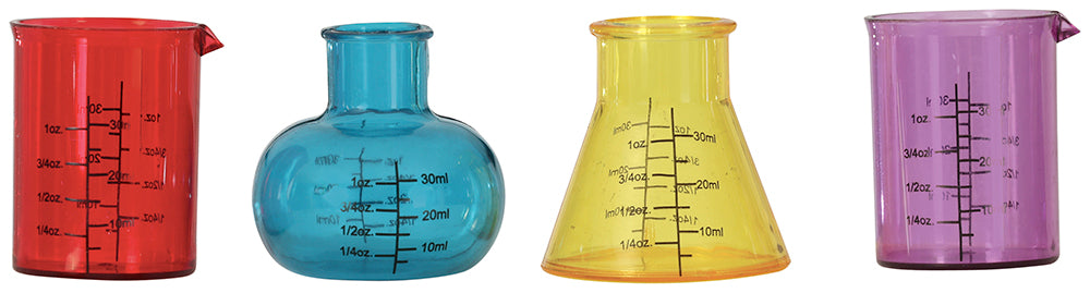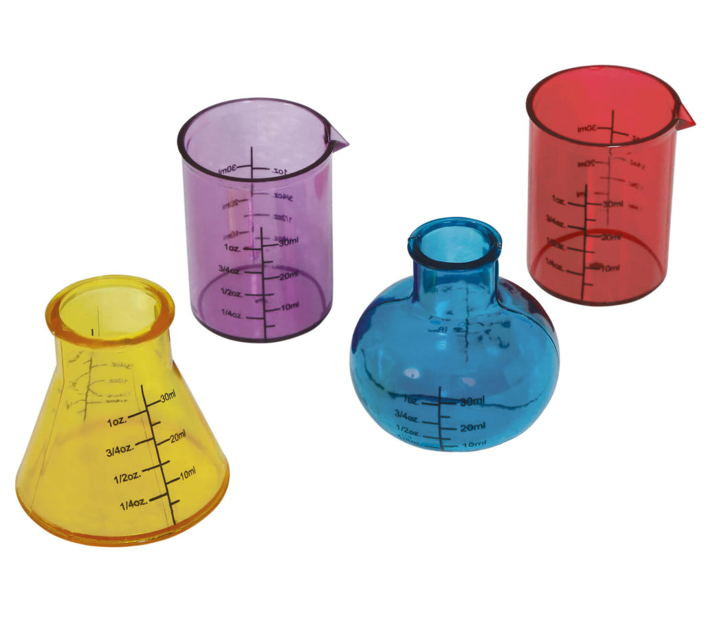 - Vier bunte Laborflaschen für experimentelle Halloween-Dekorationen