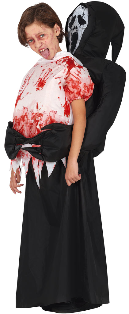Erleben Sie düstere Magie mit diesem spektakulären Geisterkostüm. Der blutbefleckte Look und die bedrohliche Maske entfesseln eine schaurige Atmosphäre, perfekt für Halloween. In der Dunkelheit der Nacht verwandeln sich kleine Abenteurer in Schattenwesen, die flüsternd durch die Straßen ziehen. Der dramatische Umhang fällt geheimnisvoll und verleiht einen unheimlichen Reiz. Lassen Sie die Kleinen in die Rolle gespenstischer Geschöpfe schlüpfen und die fantastische Welt der Alpträume durchstreifen. Ein wahres Highlight für jede Gruselparty, das die Mitternchtsphantasien lebendig werden lässt.