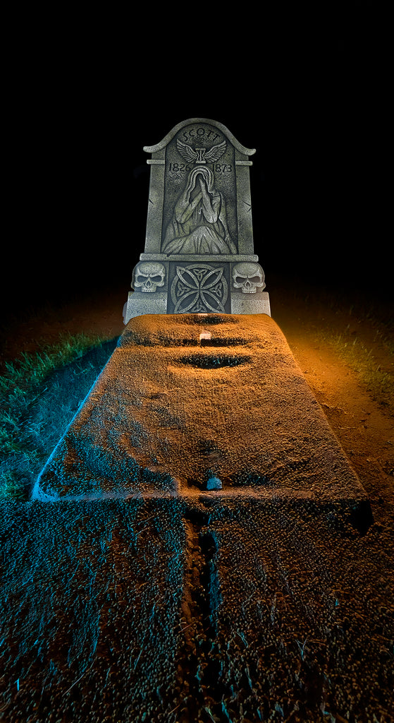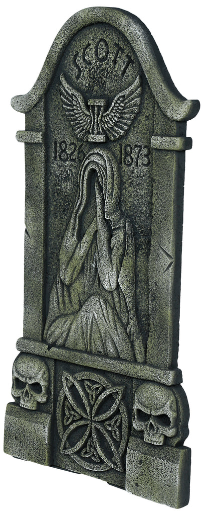 Der mystische Grabstein entfaltet eine gespenstische Aura, die jeden Raum in einen Friedhof verwandelt. Dunkle Schädel und geheimnisvolle Symbole zieren die Oberfläche, während eine verhüllte Gestalt in stiller Klage verharrt. Perfekt, um die Atmosphäre einer alten, unheimlichen Kapelle nachzubilden. Die detailgetreue Nachbildung erweckt Erinnerungen an vergangene Zeiten, mit einem Hauch von Schrecken und Mysterium. Ideal für die Halloween-Saison, wenn sich die Schatten in magische Wesen verwandeln und die Nacht zum Leben erwacht.