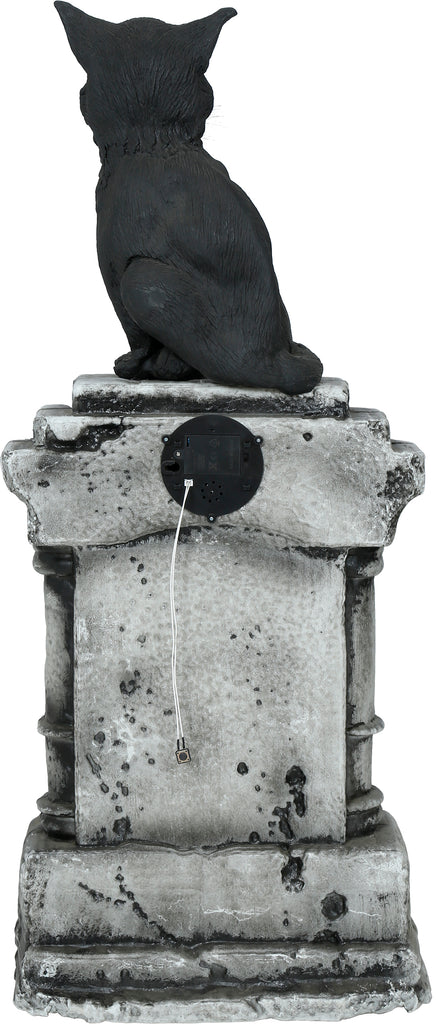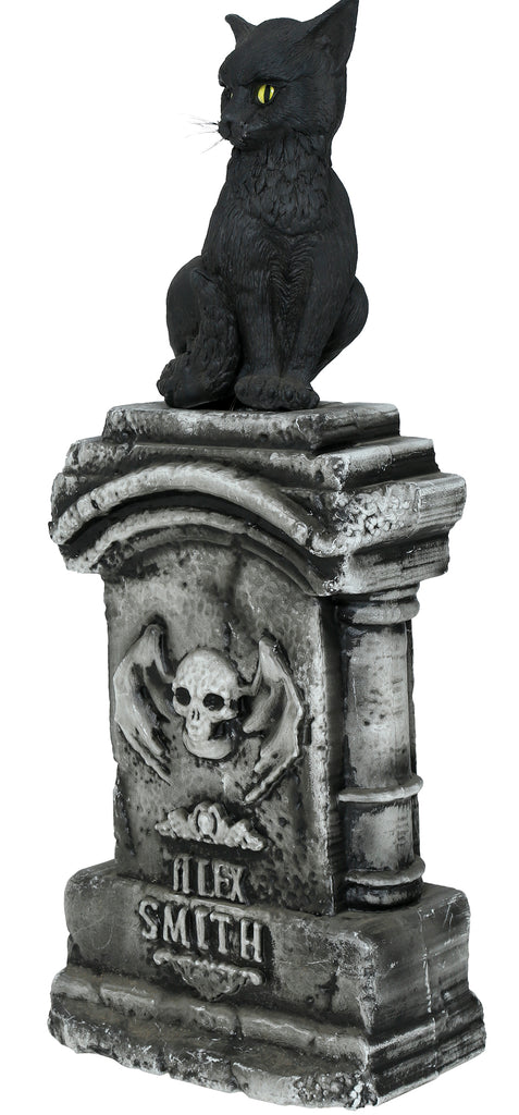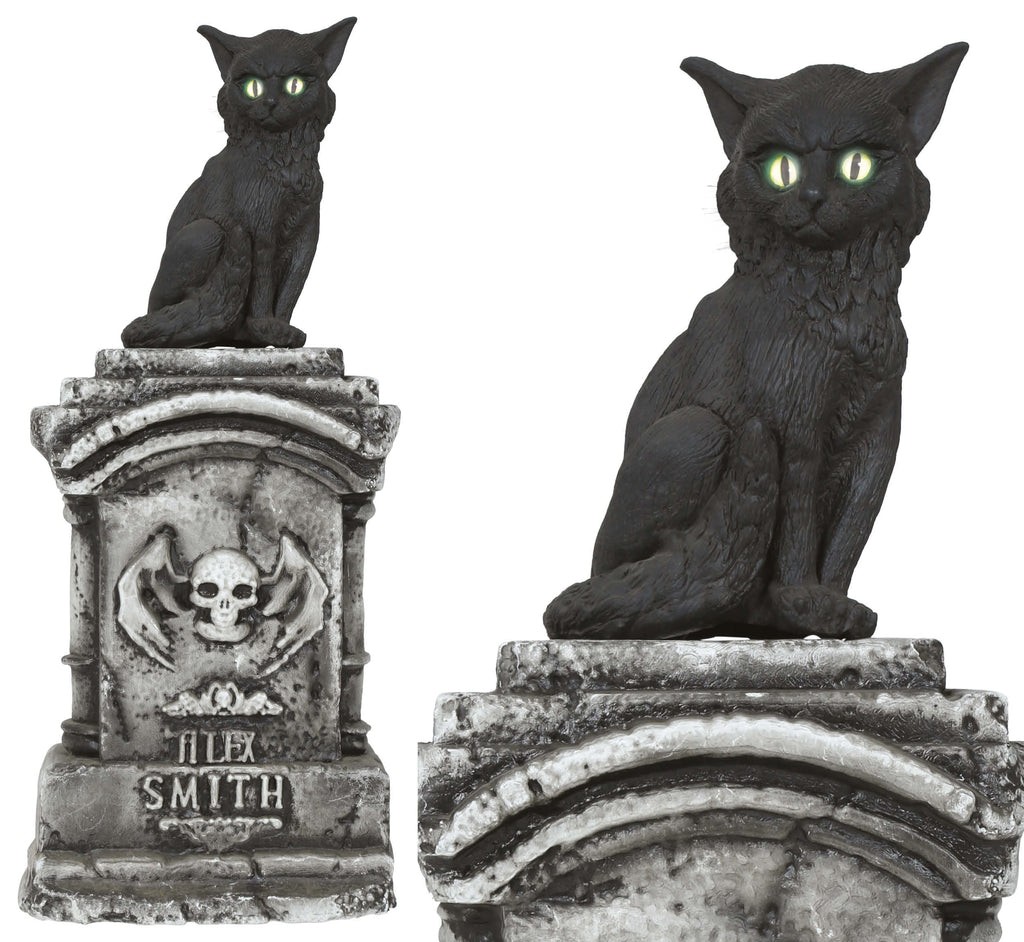 - Schwarze Katze auf Grabstein in düsteren Grautönen perfektes Schauerdeko Accessoire
