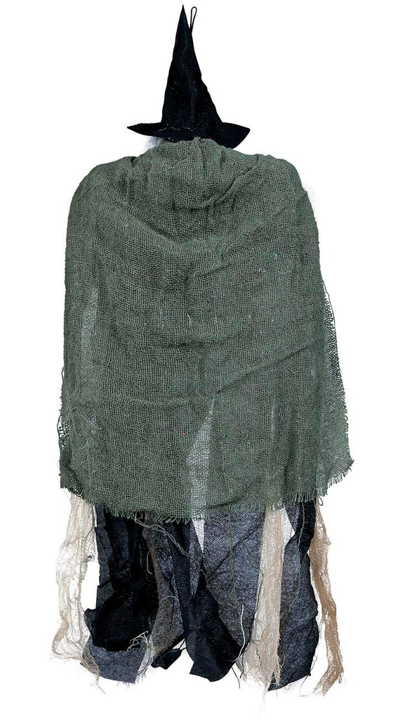 - Der schwarze Hexenhut und die zerlumpte Kleidung verleihen dieser Figur eine authentische, spukhafte Erscheinung