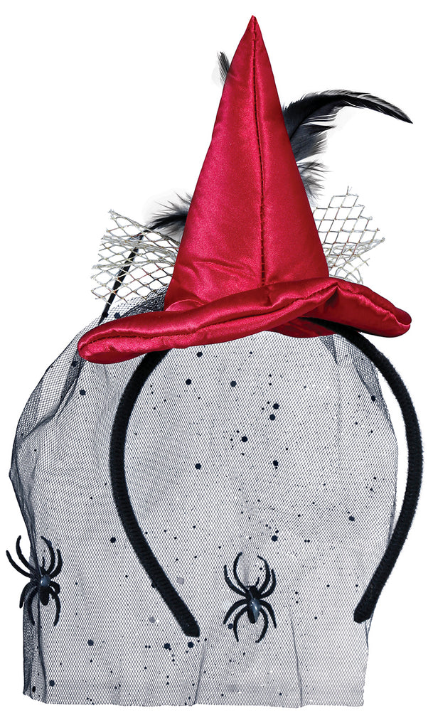 Verleihen Sie Ihrem Look einen Hauch von Magie mit diesem zauberhaften Hexenhut-Haarreif. Die Kombination aus tiefem Rot und mystischem Schwarz bringt eine geheimnisvolle Eleganz, während das Spinnennetz-Dekor Ihren Stil gekonnt abrundet. Perfekt für eine bezaubernde Hexen- oder Gothic-Inszenierung, wird dieses exquisite Accessoire zum Highlight Ihres Kostüms. Die zarte Netzstruktur mit dekorativen Spinnen verleiht dem Haarreif eine schaurig-schöne Note. Lassen Sie sich von der Dunkelheit umhüllen und spielen Sie mit der Magie der Nacht. Die verspielten Details bringen Fantasie und Stil zusammen.