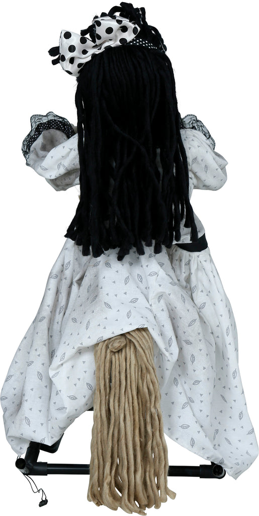 Erwecken Sie Ihre Halloween-Nacht mit einer gespenstischen Atmosphäre zum Leben! Diese Hexenpuppe auf ihrem robusten Schaukelpferd zieht Sie in eine magische Welt aus Spuk und Zauberei. Ihre Augen funkeln in der Dunkelheit und lassen sie im fahlen Mondlicht fast lebendig erscheinen. Das detailreich verzierte Kleid und die geheimnisvolle Aura machen sie zum perfekten Blickfang. Egal, ob Sie eine gespenstische Kulisse oder ein mystisches Ambiente schaffen möchten, diese Hexenpuppe wird Ihre Gäste in ihren Bann ziehen. Eine einzigartige Ergänzung für jedes Halloween-Dekor, die die Essenz des Mystischen und Unbekannten verkörpert und jedem Raum eine geheimnisvolle Note verleiht.