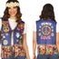 Entdecken Sie die Welt der Blumenkinder mit dieser farbenfrohen Weste, die den Geist der 70er Jahre wieder aufleben lässt. Ideal für Karneval, versprüht dieses Kleidungsstück den Charme vergangener Zeiten. Mit lebhaften Farben und verspielten Mustern, die Frieden und Liebe symbolisieren, zieht es alle Blicke auf sich. Die Fransen verleihen der Weste ein authentisches Retro-Flair und wecken Erinnerungen an farbenfrohe Festivals und ausgelassene Hippie-Partys. Kombiniert mit einem Stirnband und einer lockeren Jeans sind Sie perfekt gerüstet für ein unbeschwertes Abenteuer, das den Geist der Freiheit und Kreativität verkörpert.