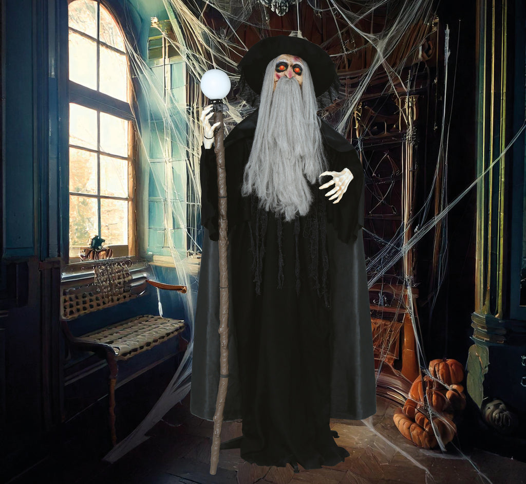 Entdecke die mystische Welt der Zauberer mit dieser faszinierenden Halloween-Dekofigur. Der imposante Magier verzaubert mit seinem eindrucksvollen Äußeren und bringt eine geheimnisvolle Atmosphäre in jeden Raum. Seine leuchtenden Augen und die detailliert gearbeitete Gewandung lassen ihn wie einen echten Meister der Magie erscheinen. Ideal für Themenpartys oder als Hingucker im Eingangsbereich verleiht diese Figur jedem Event einen Hauch von Zauberei. Mit seiner fesselnden Präsenz zieht der Zauberer alle Blicke auf sich und taucht die Umgebung in ein magisches Licht.