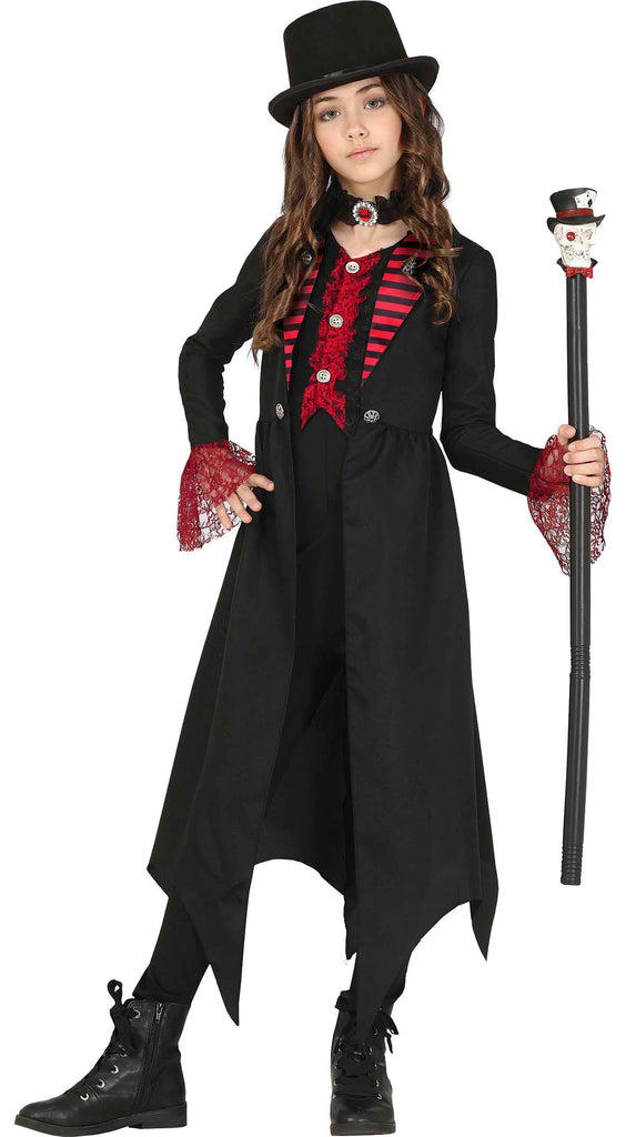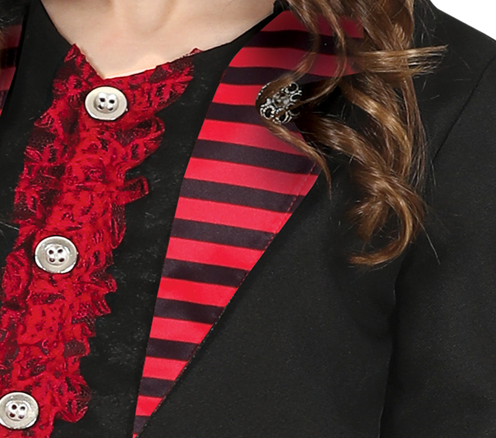 Verwandle dich in einen magischen Zirkusdirektor und betrete eine verspielte Phantasiewelt. Das Kostüm besticht durch seine elegante Kombination aus Rot und Schwarz und bringt mit raffinierten Details wie dem Hut und dem Schädelmotiv an der Krawatte außergewöhnlichen Charme. Ein langes Cape macht den Auftritt theatralisch perfekt und lässt dich wie aus einer anderen Zeit erscheinen. Die raffinierten Spitzenärmeln ergänzen das Outfit und verleihen eine geheimnisvolle Note. Ob im Theaterstück oder Abenteuerspiel, dieses Kostüm bietet Inspiration und Spielspaß für viele Anlässe.