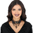 Erleben Sie die geheimnisvolle Aura vergangener Zeiten mit dieser majestätischen Halskette. Ein funkelnder schwarzer Stein schmückt das Zentrum, umrahmt von kunstvoller Stickerei. Fürstliche Verzierungen lassen Sie wie eine edle Märchenkönigin erscheinen. Das Zusammenspiel aus edlem Schwarz und filigranen Details macht dieses Schmuckstück zu einem wahren Schatz für Halloween oder maskierte Bälle. Tauchen Sie ein in die Welt der Marquisen und Prinzen und erleben Sie den Glamour längst vergangener Zeiten, der Ihnen einen königlichen Auftritt verleiht.