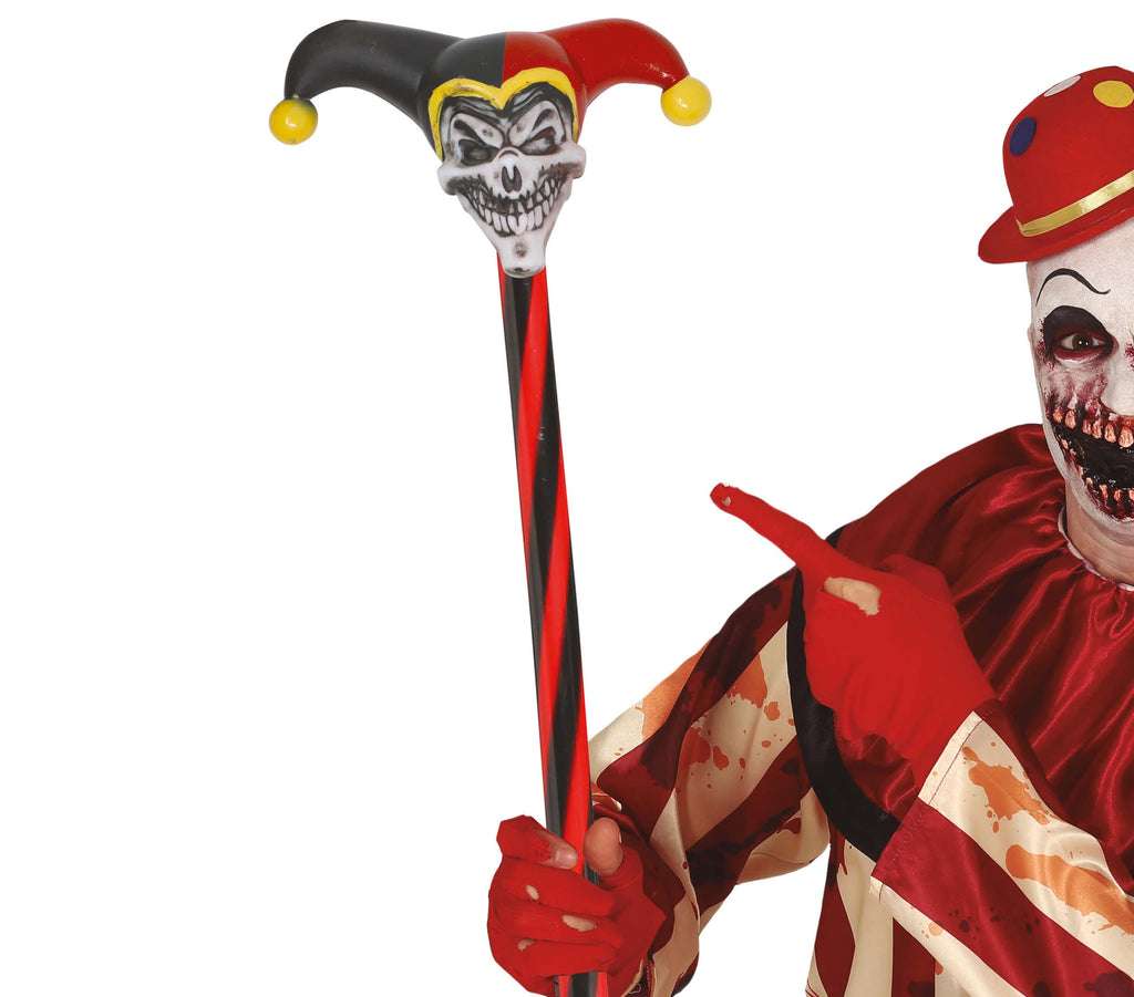 Lassen Sie sich in die unheimliche Welt von Mr. Smile entführen, wo der Grusel nie aufhört. Mit seinem diabolischen Grinsen und den markanten Harlekinfarben ist dieser Stab sowohl verspielt als auch bedrohlich. Ideal für eine Halloween-Nacht voller Schauer, verleiht er jeder Verkleidung das gewisse Etwas. Perfekt für eine Stimmung voller Mystik und Dunkelheit, ist es das ultimative Accessoire für Horrorliebhaber. Ob bei einer gruseligen Party oder als eindruckswohlle Dekoration, dieser Stab zieht alle Blicke auf sich.