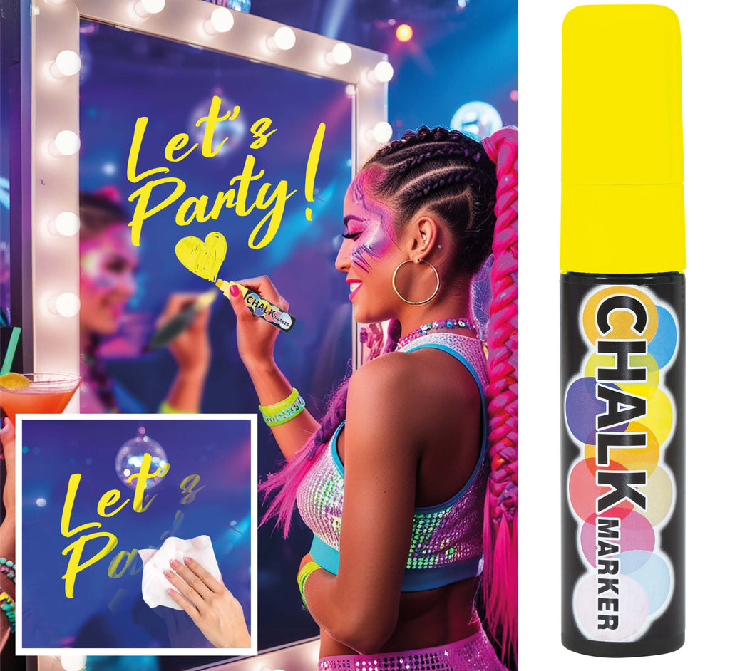 Erleben Sie den Karneval in einer neuen Dimension mit unserem lebhaften Party Dekoration Kreidestift in leuchtendem Gelb. Perfekt für Spiegel, Fenster und saisonale Festivitäten, bringt dieser Marker Farbe in jede Feier. Lassen Sie Ihrer Kreativität freien Lauf und gestalten Sie auffällige Designs, die jeden Raum in eine festliche Bühne verwandeln. Besonders geeignet für Partys und Events, verleiht er Ihrer Dekoration den letzten Schliff. Ob auf Hochzeiten, Geburtstagsfeiern oder doch während des fröhlichen Karnevals, dieser Stift setzt im Nu farbenfrohe Akzente. Die vielseitige Anwendungsmöglichkeit gibt Ihnen die Freiheit, Ihre Umgebung ganz individuell zu gestalten.