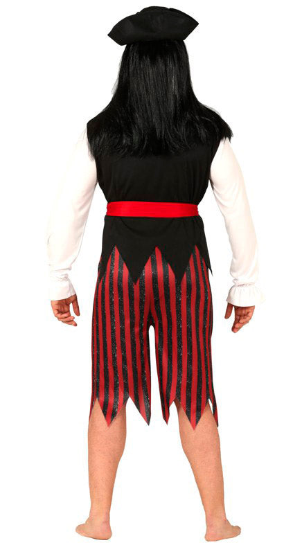 Bereit, die Segel zu setzen? Dieses abenteuerliche Pirat Karnevalskostüm lädt dazu ein, die Weltmeere zu erobern. Der Kontrast zwischen der schwarzen Weste und den markanten rot-schwarz gestreiften Hosen verleiht dem Auftritt eine authentische Seeräuberoptik. Mit dem passenden Hut und dem roten Bandana wirst du im Handumdrehen zur gefürchteten Figur jeder Faschingsparty. Tauche ein in die Welt der Schatzinseln und Freibeuter und wecke deinen inneren Rebell. Ideal für alle, die auf dem nächsten Event etwas Aufsehen erregen wollen!