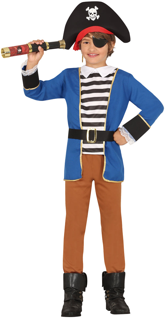 - Abenteuerliches Piratenkostüm mit blauen und braunen Akzenten